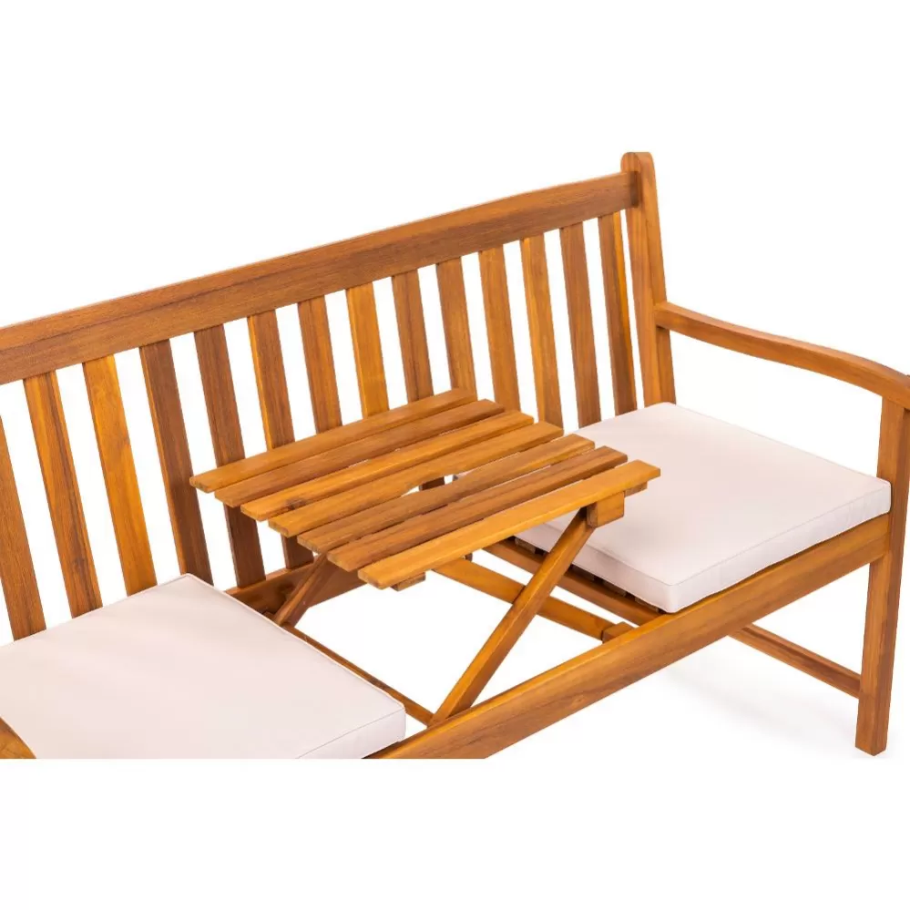 Středový vyklápěcí stolek umožňuje snadno odložit nápoje, knihu nebo drobné občerstvení. Lavice tak nabízí nejen komfortní posezení, ale i praktické řešení pro chvíle relaxace. Potěší také rychlou a jednoduchou montáží.