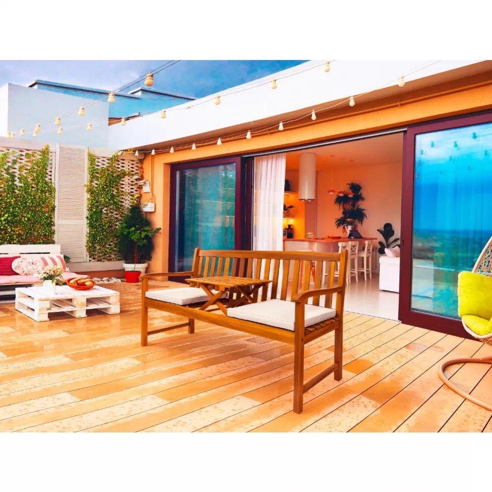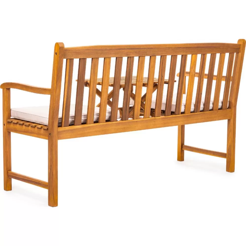 Robustní konstrukce z kvalitního akáciového dřeva zajišťuje dlouhou životnost i elegantní vzhled. Lavice o rozměrech 62 × 150 × 91 cm poskytuje dostatek prostoru pro pohodlné posezení dvou až tří osob na zahradě, terase i balkoně.