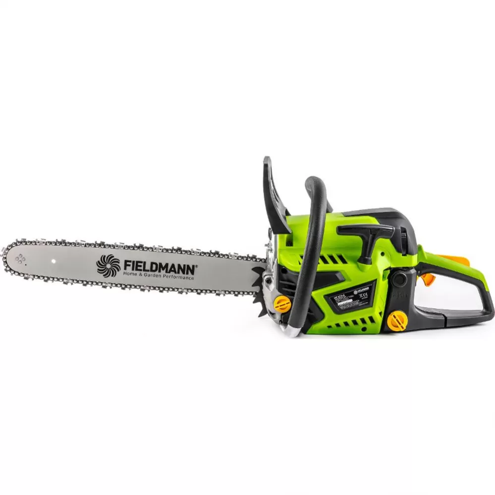 Samozřejmostí je také snadná údržba. Kvalitní řetěz Fieldmann je mazán automatickou olejovou pumpou, což snižuje tření a zvyšuje životnost řetězu, sílu mazání lze pohodlně nastavit pouhým šroubovákem. Kromě nezbytného nářadí pro manipulaci s lištou a řetězem, je součástí balení také kalibrovaná nádoba pro přípravu palivové směsi.