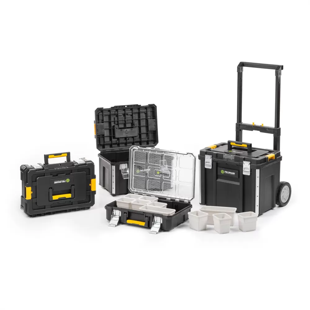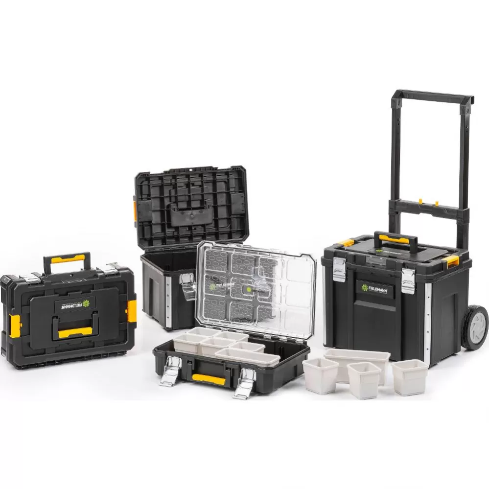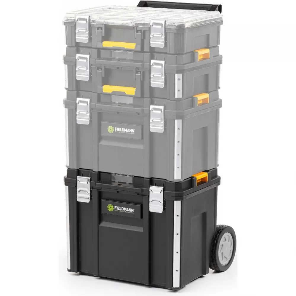 Pokud máte rádi své věci z dílny uklizené a úhledně uspořádané, pak vám přijde vhod box na nářadí FDN 4171 od značky Fieldmann. Můžete ho využít na uschování vašeho nářadí, kabelů či jiných nezbytností. Své věci tak budete mít přehledně uspořádané. Box je vyroben z kvalitního pevného materiálu, který je odolný proti nárazům, vodě i prachu. Disponuje teleskopickou rukojetí a terénními tlumícími koly, které umožňují snadný přesun boxu na místo, kde ho budete potřebovat.
